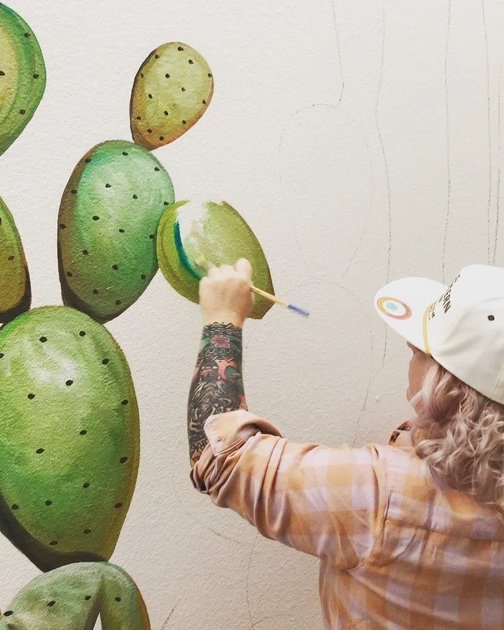 Lauren Lee is a Arizona based fine art painter and muralist who began her public art journey with her first mural "Three Birds" that was in the center of downtown Phoenix's art district Roosevelt Row. The mural became an overnight sensation with countless selfies being snapped in front of the gigantic colorful birds, standing in a row looking over the art district. A succession of sold out art shows and small public art projects boomed into a full time career in public art and 3000+ sq foot murals, three stories in size of botanicals and foliage. She has been featured on the cover of Echo Magazine as well as the cover of Java Magazine and named one of Phoenix's Top 100 Creatives by the Phoenix New Times. With a history in theatre and a former career teaching, Lauren also does public speaking on Women and the Arts as well as Emerging Public Artists.